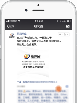 由微信朋友圈外层展示和内层原生推广页两部分组成
